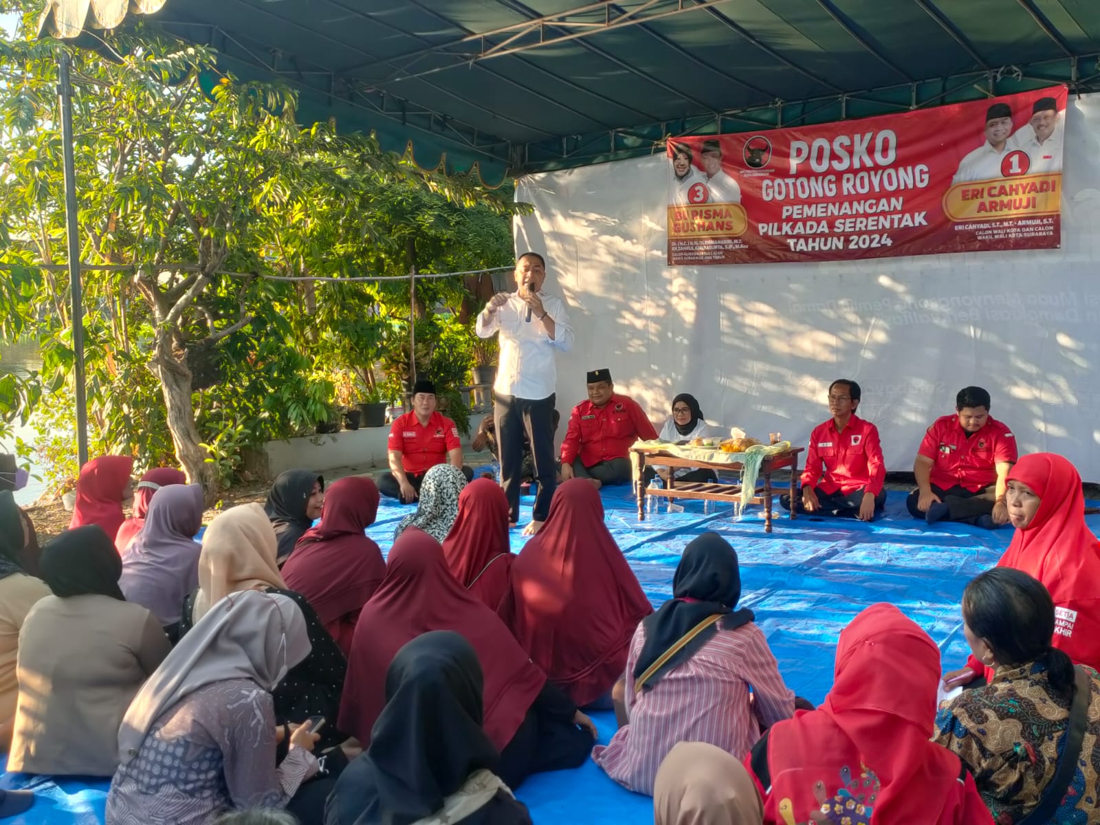 Acara kampanye ini juga dihadiri Ketua DPC PDI Perjuangan Surabaya, Adi Sutarwijono, Wakil Sekretaris DPC Achmad Hidayat, serta Ketua PAC PDI Perjuangan Kecamatan Jambangan, Mohammad Sunar.